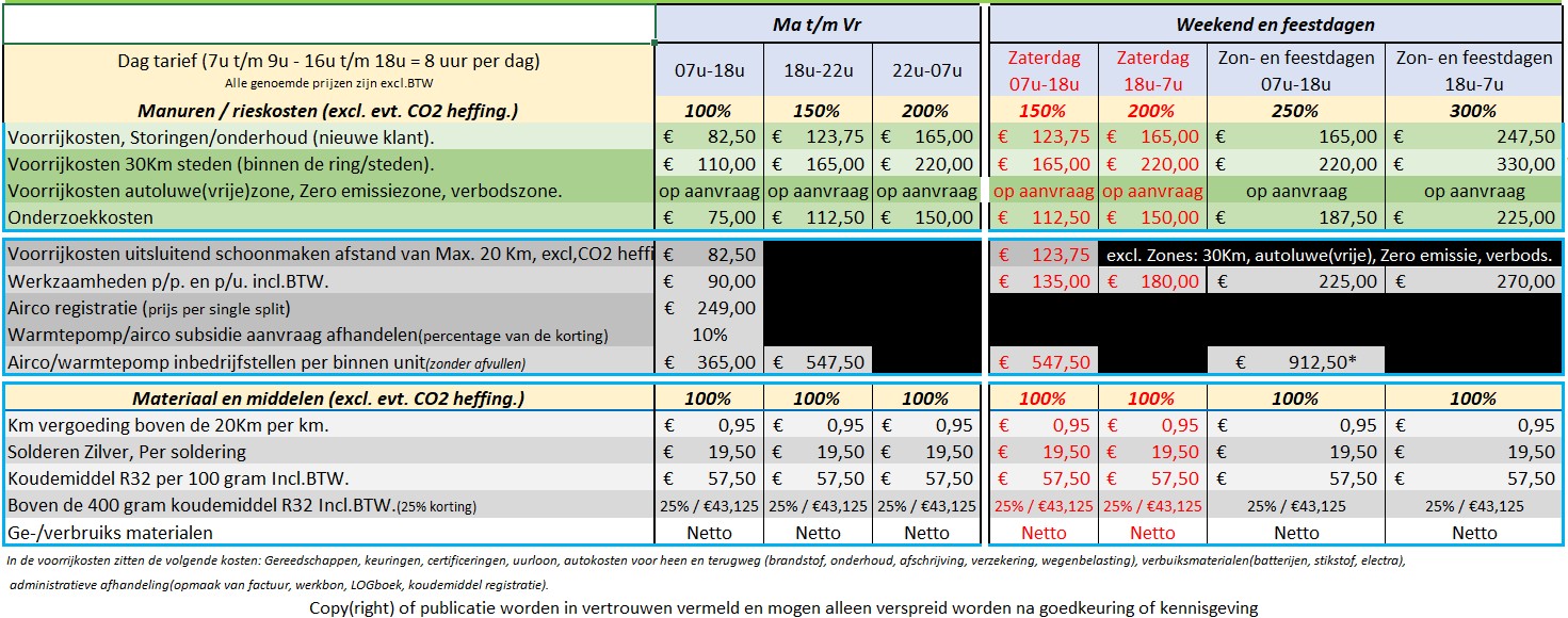 4.1 Alle prijzen zijn in euro's en zijn exclusief omzetbelasting en andere heffingen die van overheidswege worden opgelegd, tenzij anders vermeld. Eventuele bijzondere extra kosten betrekking hebbend op de import en/of inklaring van door gebruiker aan de klant te leveren zaken zijn niet bij de prijs inbegrepen en zijn derhalve voor rekening van de klant.